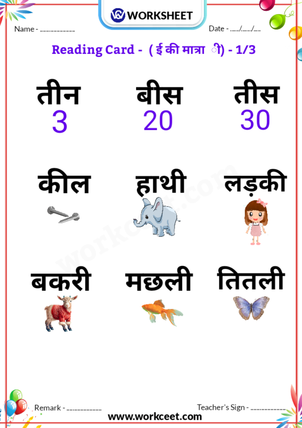 Workceet प्रस्तुत करते हैं मात्राओं पर आधारित सरल और सुलभ मात्रा कार्ड, जो कि पढ़ने में आसान और बच्चे को आत्मविश्वास दिलाने में मदद करेंगे – आप इन्हें डाउनलोड कर बच्चों को उपलब्ध करा सकते हैं –
