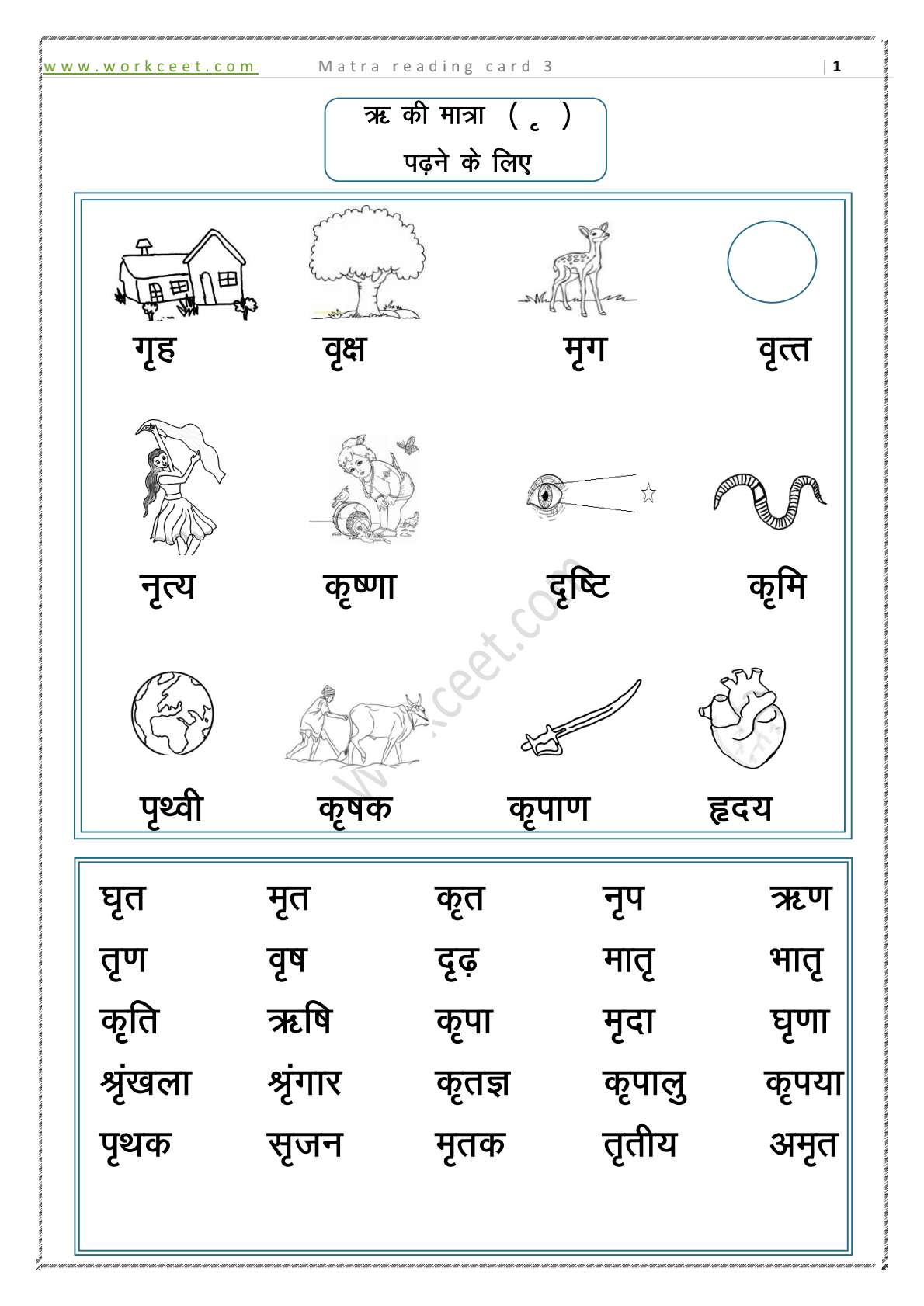 Ri ki Matra ( ऋ की मात्रा ) Reading Practice Sheet –
